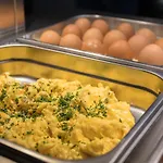 Todas as manhãs o pequeno-almoço vegetariano é servido no restaurante. As opções alimentares para jantar estão disponíveis no restaurante Markt ALM no local.